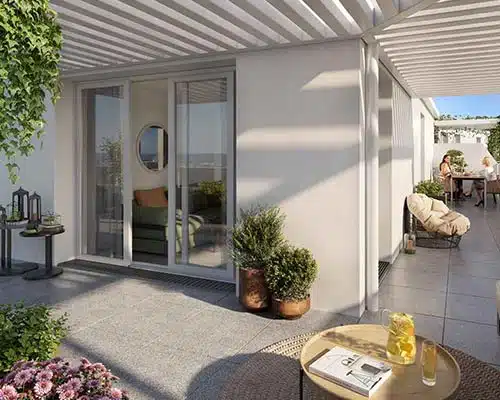 Côté confort, les appartements bénéficient de prestations soignées et modernes : larges baies vitrées pour maximiser la lumière naturelle, terrasses en lames bois en rez-de-chaussée, balcons, loggias et terrasses en carrelage 60×60 cm aux étages, ainsi qu’un sol stratifié chanfreiné dans les chambres. Enfin, la résidence Voltige est conçue pour offrir une consommation énergétique optimisée, garantissant bien-être et économies au quotidien.
